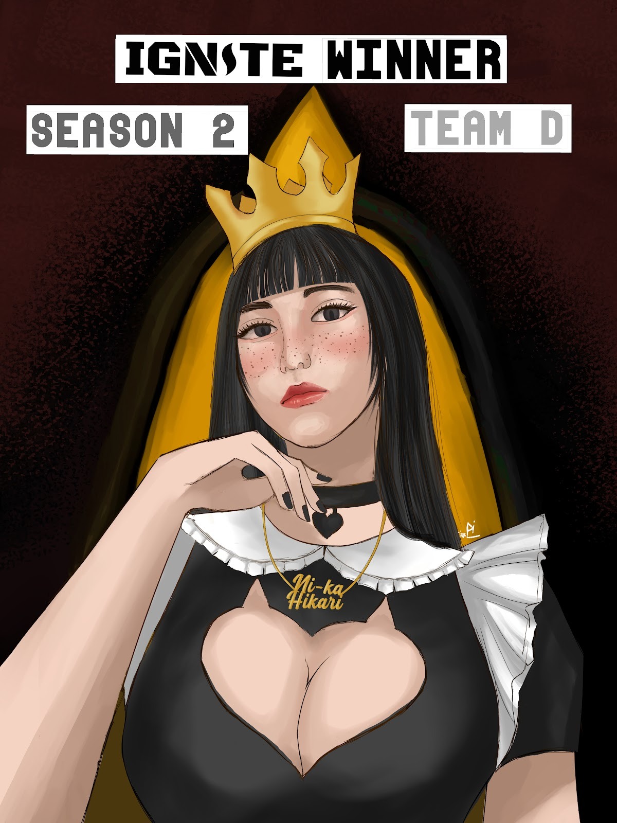 To mark the Season 2 win, Ni‑Ka unveiled a striking new artwork created by illustrator @earlynt_. The piece introduces Ni‑Ka Hikari — The Monarcha, a persona that embodies transformation, self‑possession, and earned authority.